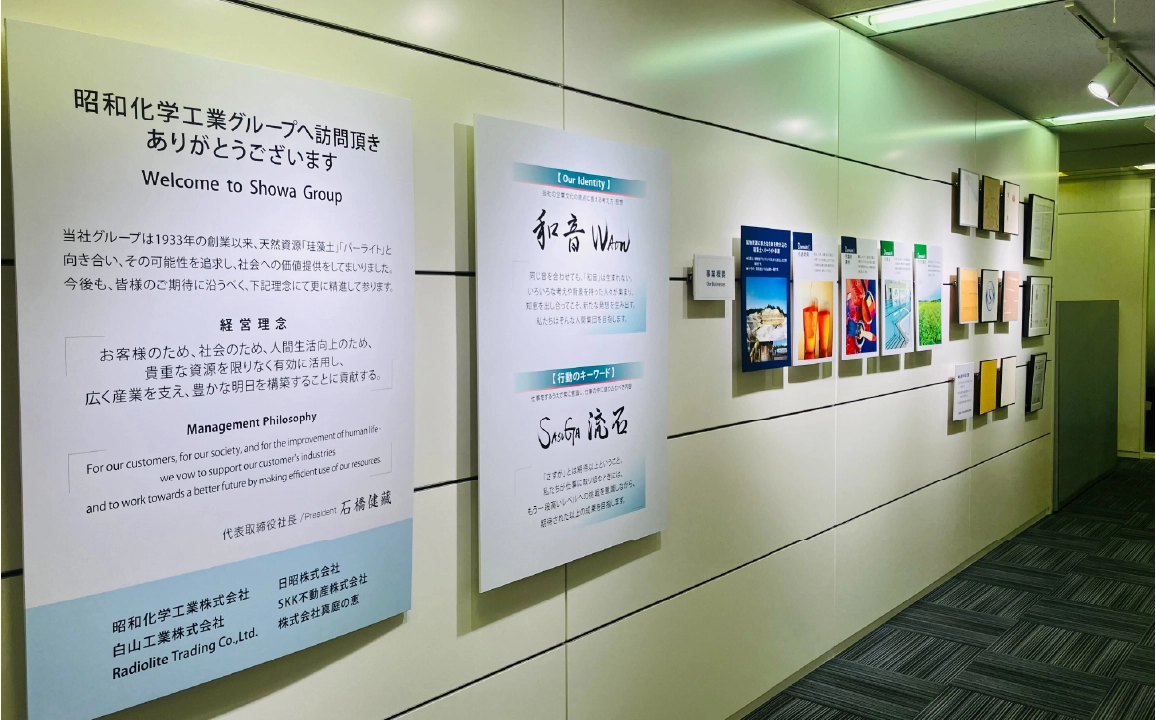 昭和化学工業のオフィス、工場、研究分析センターなど、リアルな雰囲気をご確認ください。